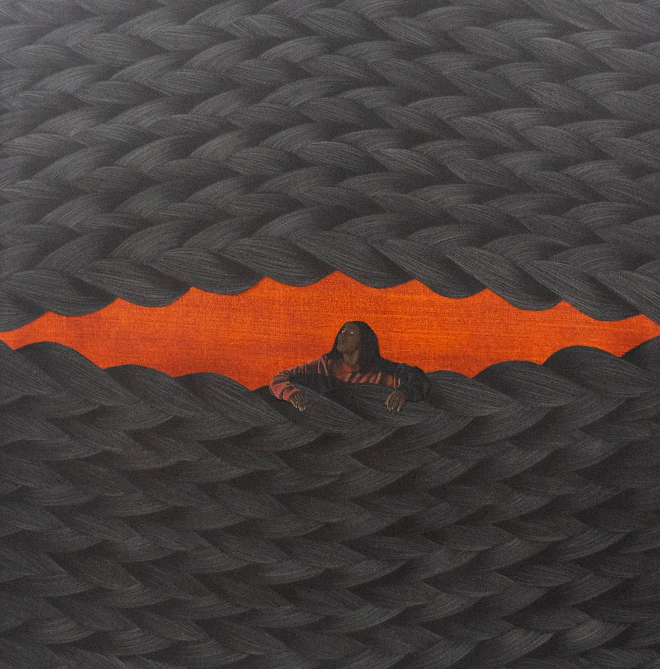 “The genesis of Within began with my birth. My father’s people —the Yorubas— do not name their children until the seventh day. I was named Olubunmi on my seventh day, but for my first week of life, I was a nameless alien thrust into a new existence. This alien, I now call Ó, was born a compound of past lives and ancestral coding. As I went on to live this new life of mine as Olubunmi, Ó retreated into the deep crevices of my mind and built an entire world I now know as ‘Within’. This is a world where skin becomes clay and strands of hair grows from its pores. I, Olubunmi, was unaware of this world for the first twenty years of my life until I accidentally stumbled through a portal in my mind when meditating and met Ó. By combining strands of our hair, Ó and I created eight braided cocoons in which eight hybrid beings grew and were born into Within and thus became the first indigenous peoples of the world. Each hybrid was born in my image but Ó’s alien gene activated different mutations in each of them. The hybrids were the primary residents of Within alongside Ó after my first visit. However, the portal I stumbled through remained open and people from my waking life began to be subsumed into my mind and into Within. Sentient perceptions of family members, friends and passersby became cross-reality migrants in the fantastical landscape. Now, Within is an ever-evolving complex repository for all that I encounter. As Within evolves, strands become braids, clay becomes structures, families become clans, gossip becomes history, and predecessors become gods. I only get to see this evolution in fragments when I visit the world in my daydreams.”